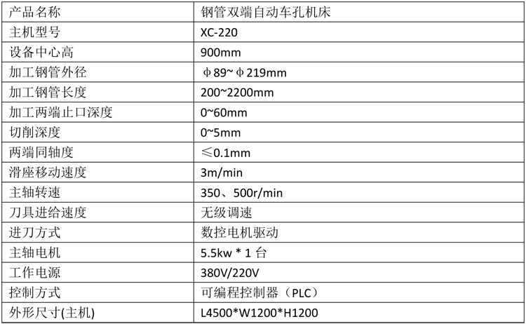 鋼管雙端自動車孔機(jī)床產(chǎn)品特性及參數(shù)